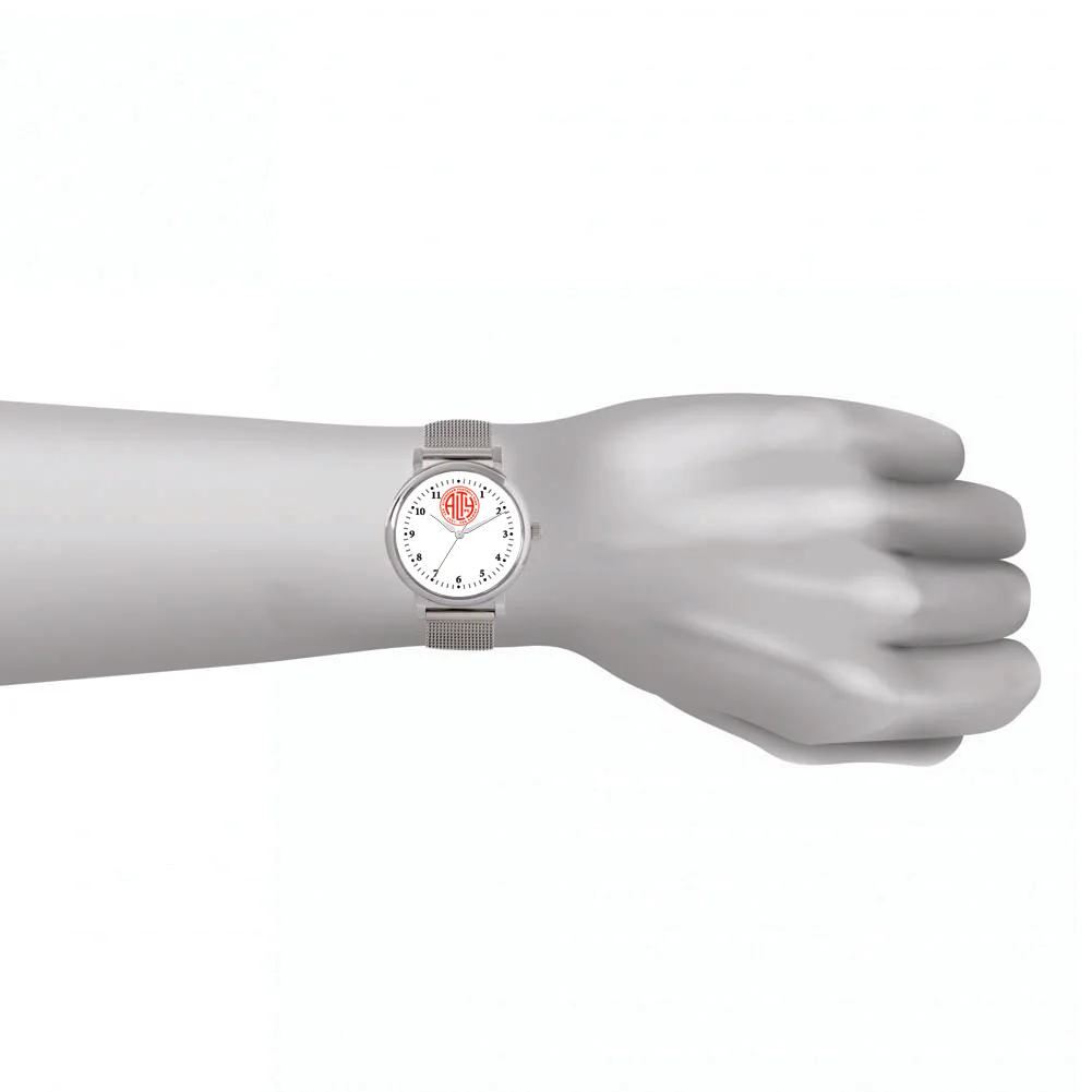 - The watch has a 38mm metal silver case in diameter, with a stainless-steel mesh strap case, 10mm in thickness and weighs 110g